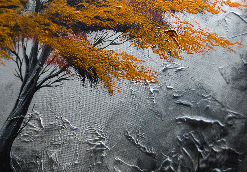 Na obraze je vidět velký nános barvy. Barvami opravdu nešetříme :) Tím každý ihned pozná, že se jedná o ruční práci.